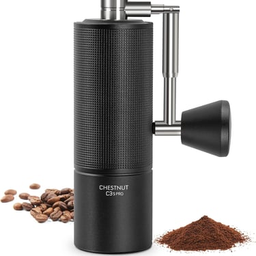 Molinillo manual de acero. Gira fácil, molienda uniforme (fina/media/gruesa). 100g café en 1 minuto.