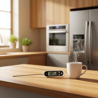 Mide temperatura exacta del agua. Pincha en el agua hirviendo: avisa con pitido cuando llega a 94°C perfecto.