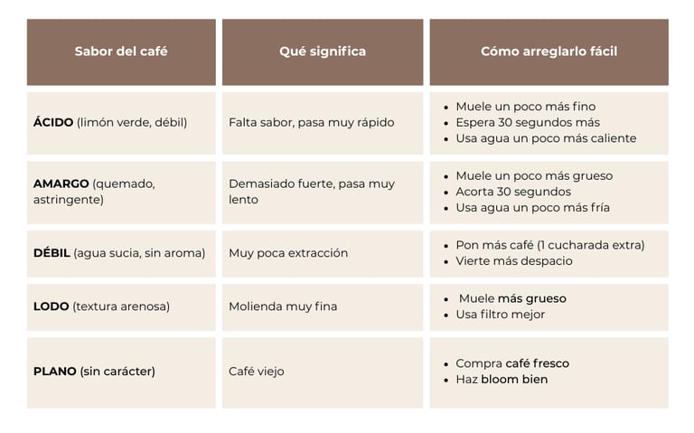 Tu café te dice exactamente qué cambiar. Prueba uno a la vez hasta que quede dulce y completo.